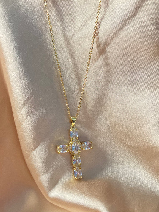 Oval Cubic Zirconia Cross Necklace