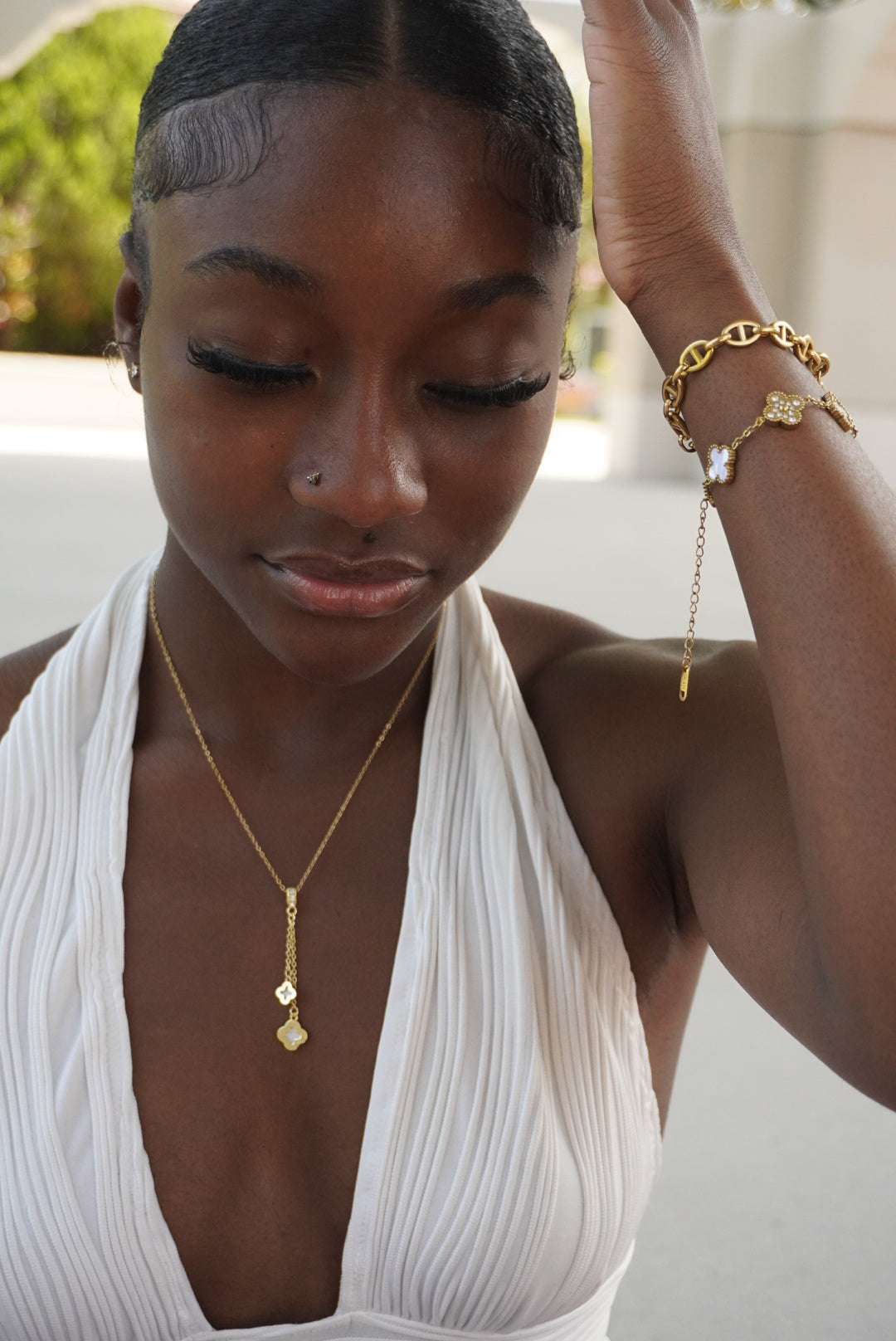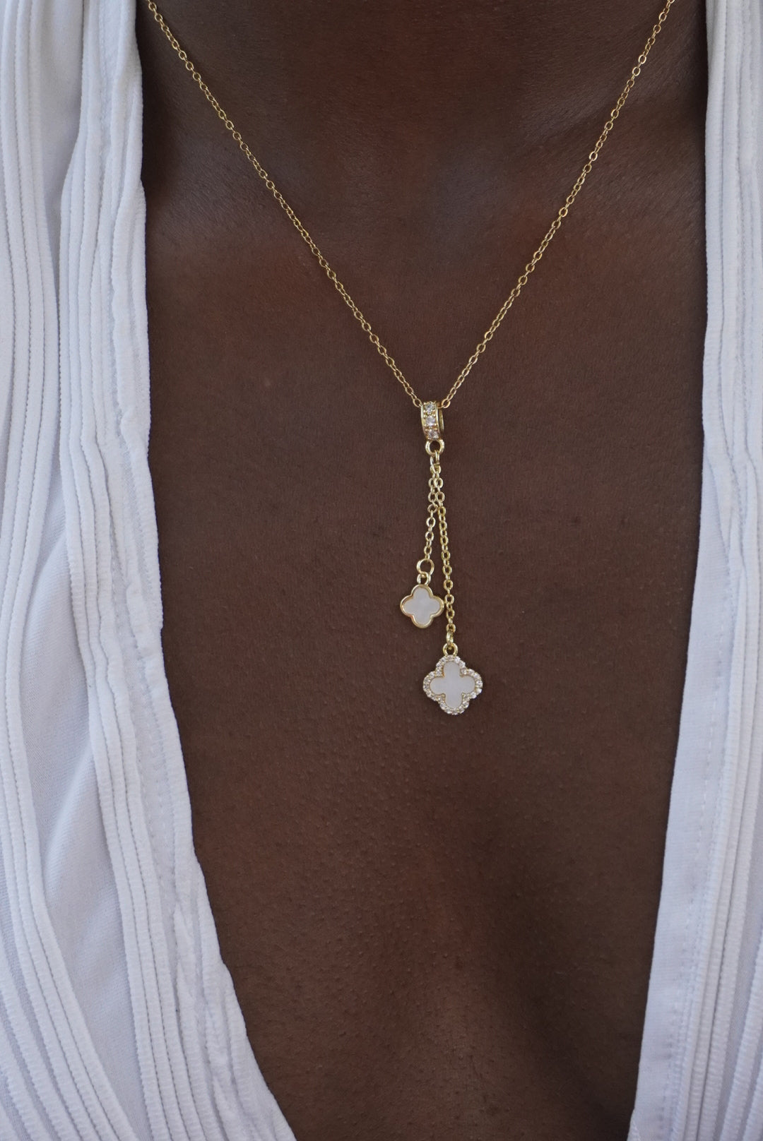 Elevate your style with our Long Clover Mid Necklace. This elegant and timeless piece adds a touch of class to any outfit. The perfect balance of cute and classy, it's a must-have for any fashion-forward individual looking to make a statement. A true luxury accessory for the sophisticated and exclusive.