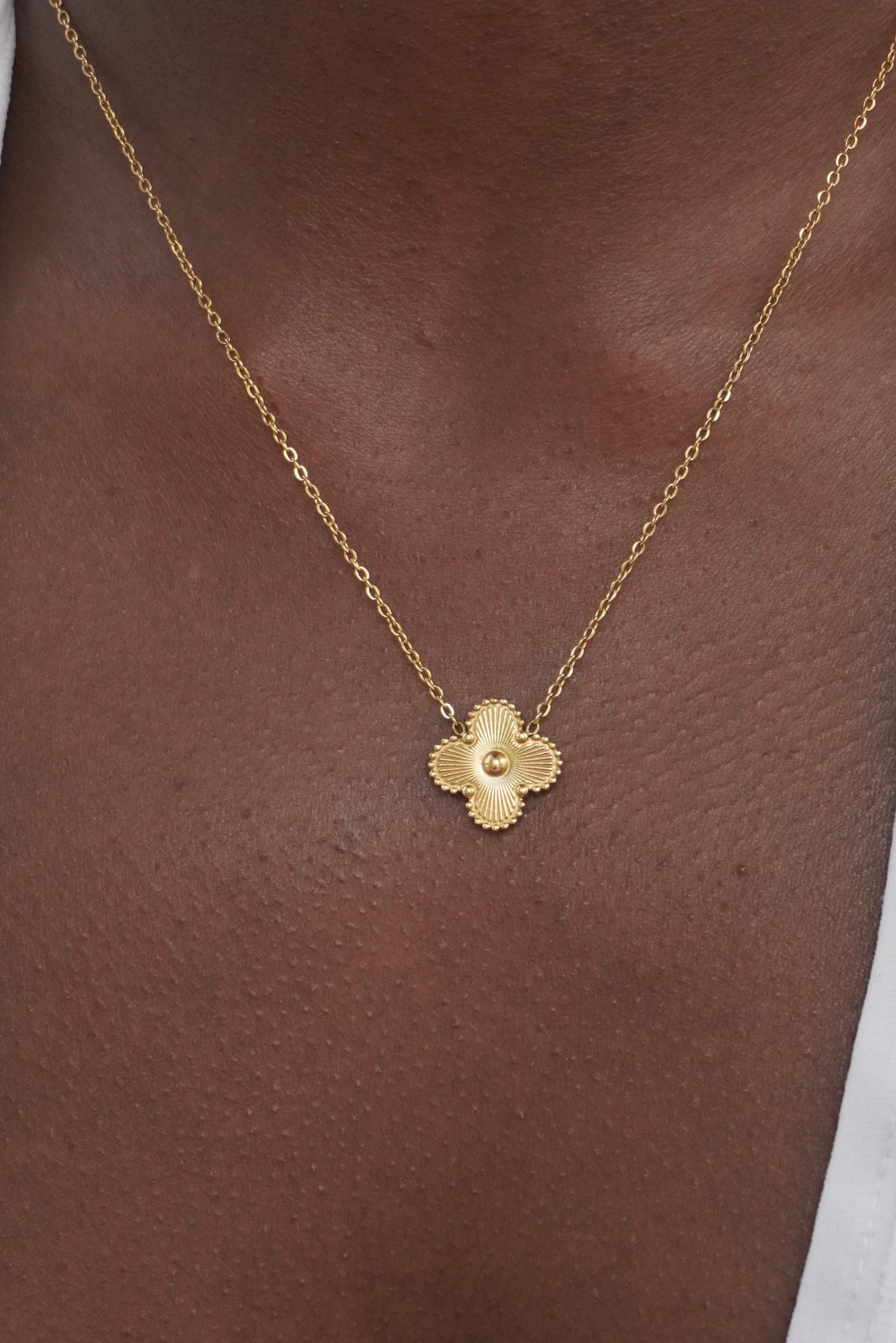 Elevate your style with our Sleek Clover Necklace. The delicate charm and trendy design add a touch of elegance to any outfit. A must-have for fashion-forward individuals seeking a unique and sophisticated accessory. Own the spotlight with this cute and timeless piece.