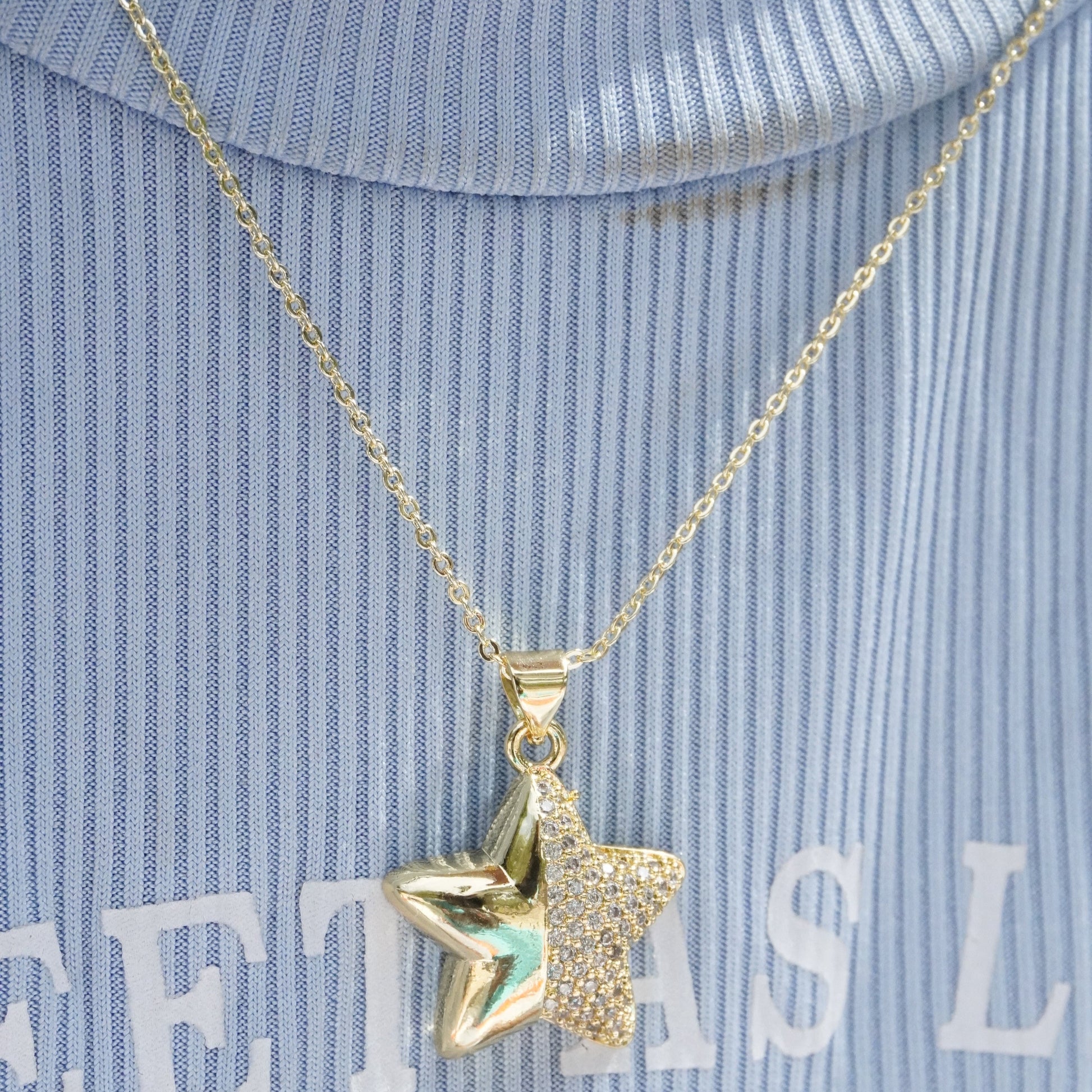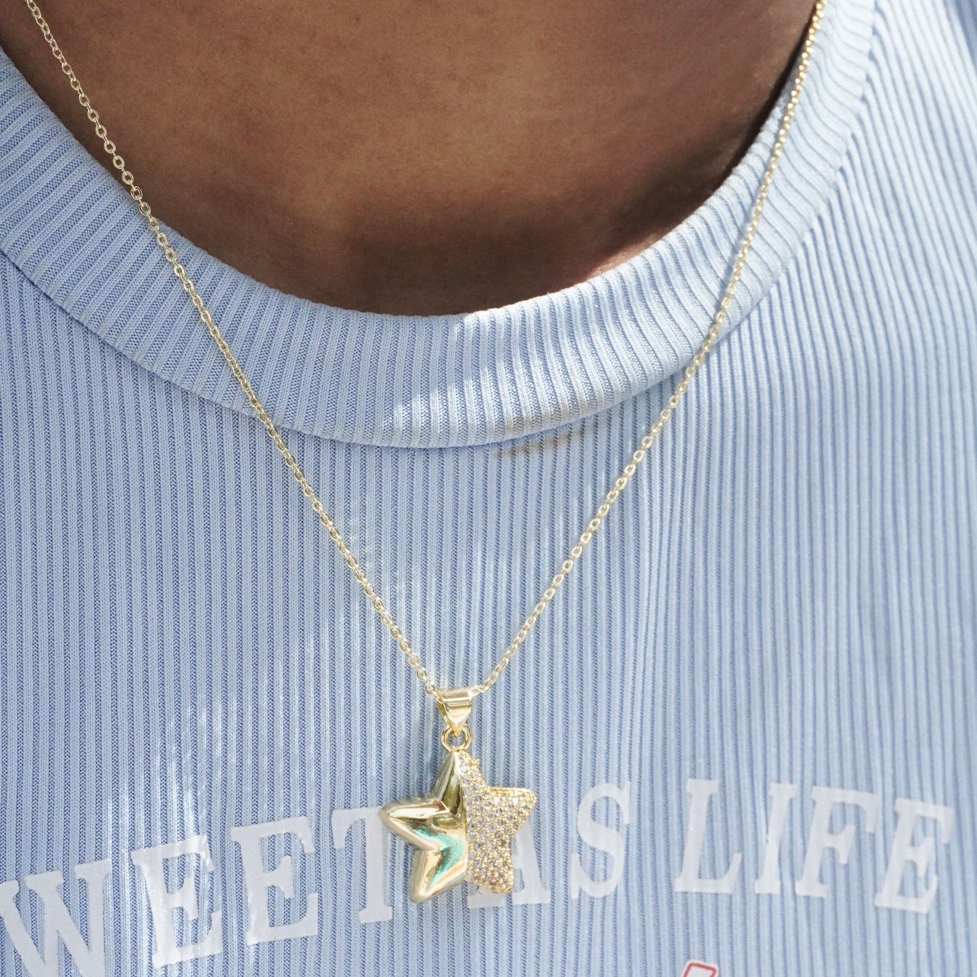 Add a touch of sparkle and style to your streetwear with our Star Half Rhinestone Necklace. This trendy accessory features a delicate star pendant adorned with rhinestones, perfect for adding a subtle touch of glam to any outfit. Elevate your wardrobe with this must-have piece.